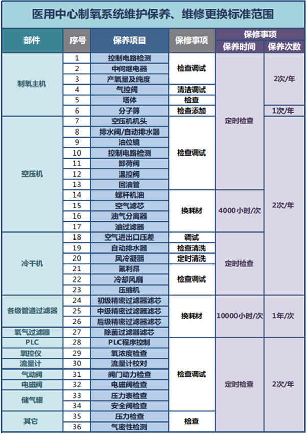 根據(jù)原國家衛(wèi)生和計劃生育委員會2013年發(fā)布 《WS 435-2013 醫(yī)院醫(yī)用氣體系統(tǒng)運(yùn)行管理》 相關(guān)規(guī)定醫(yī)院需對醫(yī)用氣體設(shè)備進(jìn)行定期維護(hù)保養(yǎng)